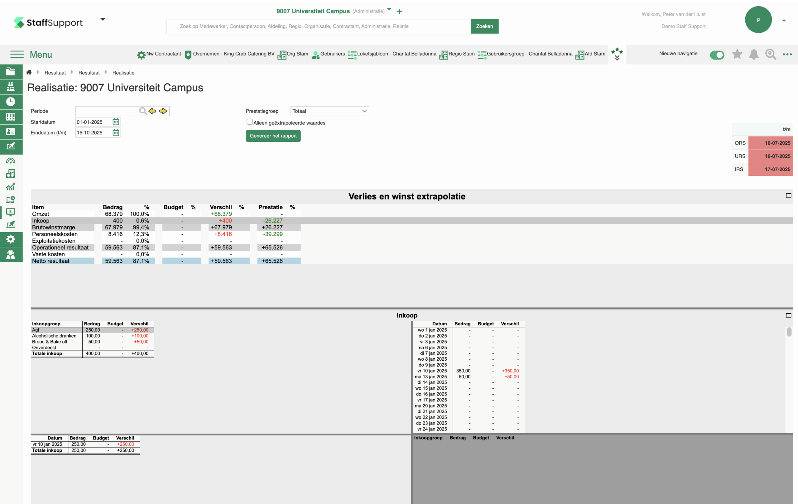 De Prestatiemodule van Staff Support helpt organisaties om grip te krijgen op prestaties, kosten en resultaten. Door gegevens over uren, omzet, inkoop en budget te combineren, ontstaat één duidelijk overzicht van hoe efficiënt en rendabel er gewerkt wordt. Zo kunnen managers en ondernemers beter onderbouwde beslissingen nemen en het maximale halen uit hun team en middelen.