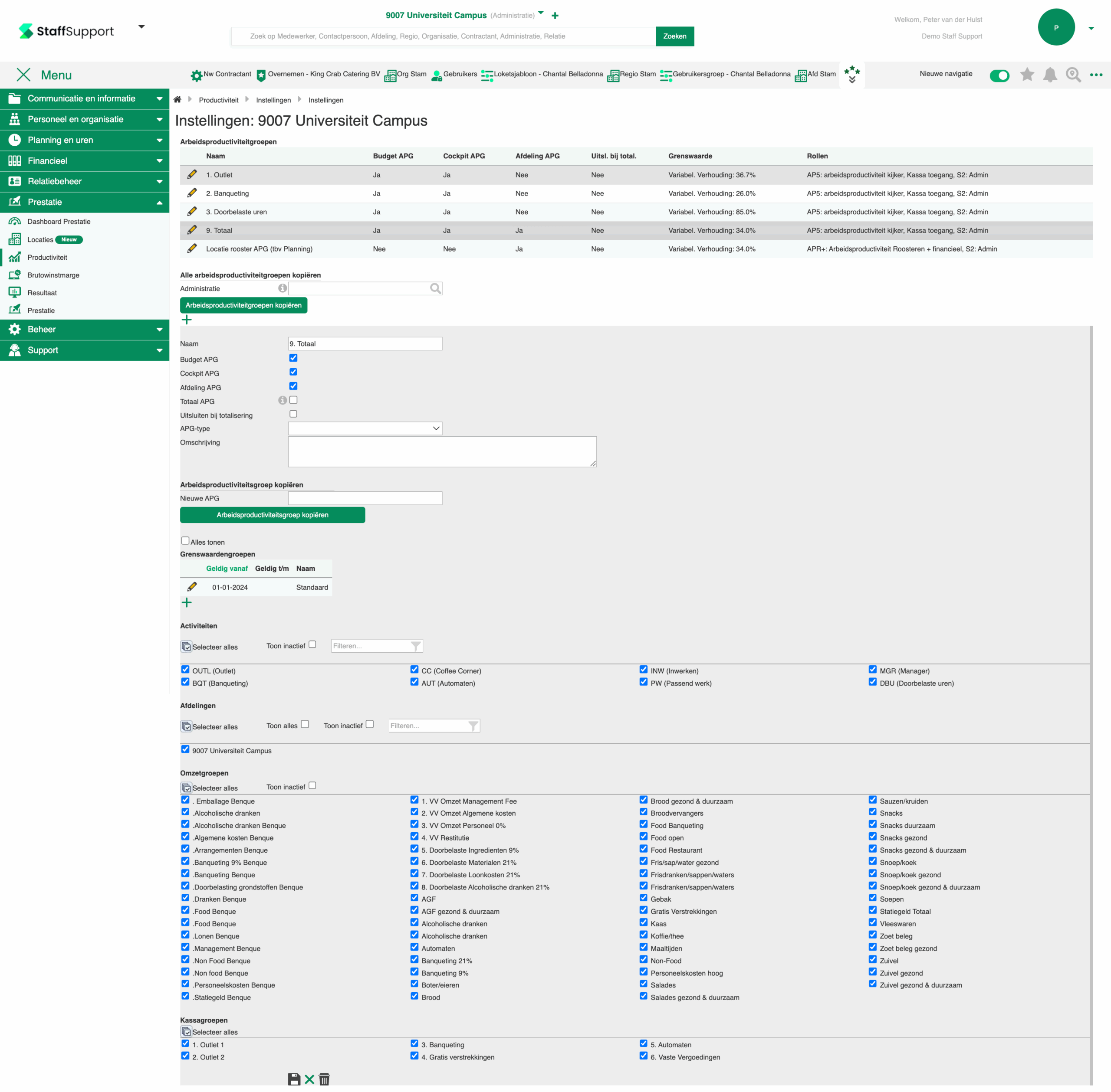 De Prestatiemodule is ontwikkeld om inzicht te geven in de verhouding tussen inzet (uren en kosten) en opbrengst (omzet en resultaat). Het systeem verzamelt automatisch gegevens uit urenregistratie, roosters, omzet en inkoop. Zo zie je in één overzicht hoe afdelingen, teams of locaties presteren ten opzichte van hun doelen.